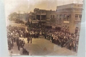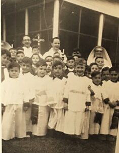 The procession would “begin with a band concert, after which the band would march through town, stopping at local businesses and homes to honor those active in the St. Joseph’s Society. “